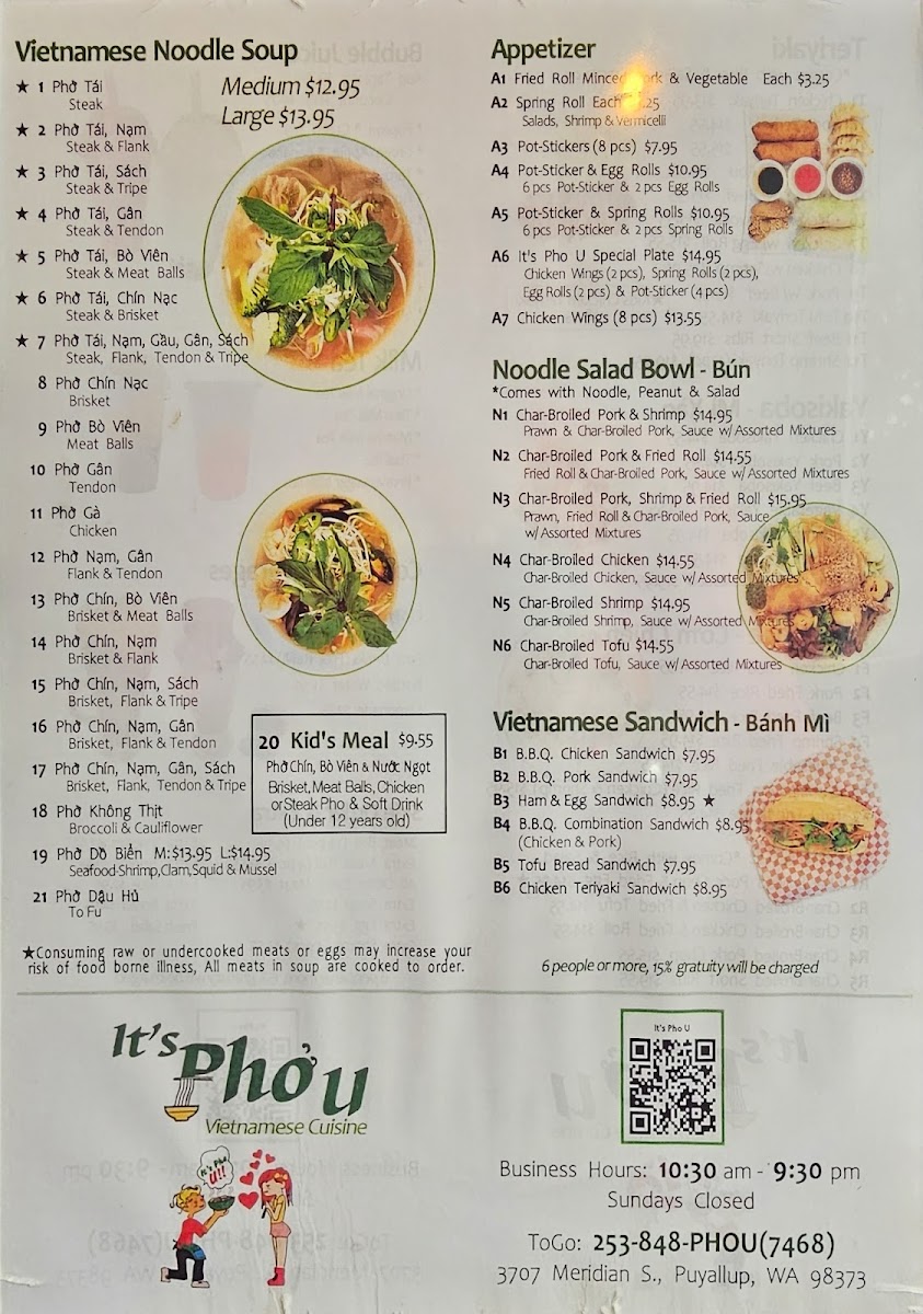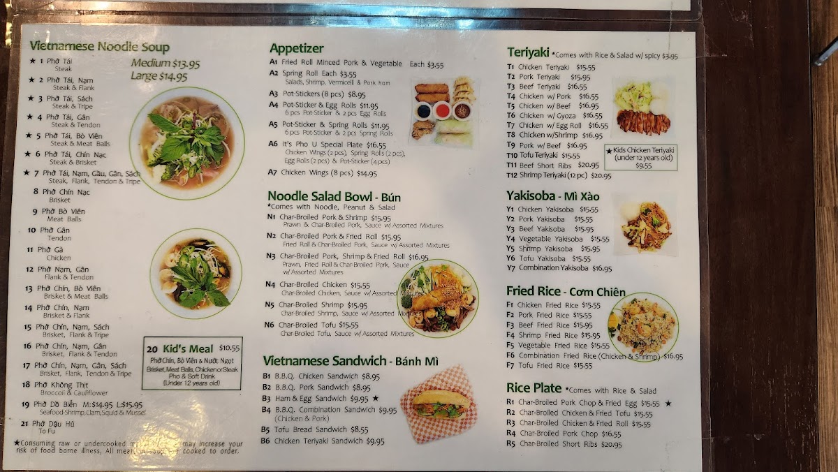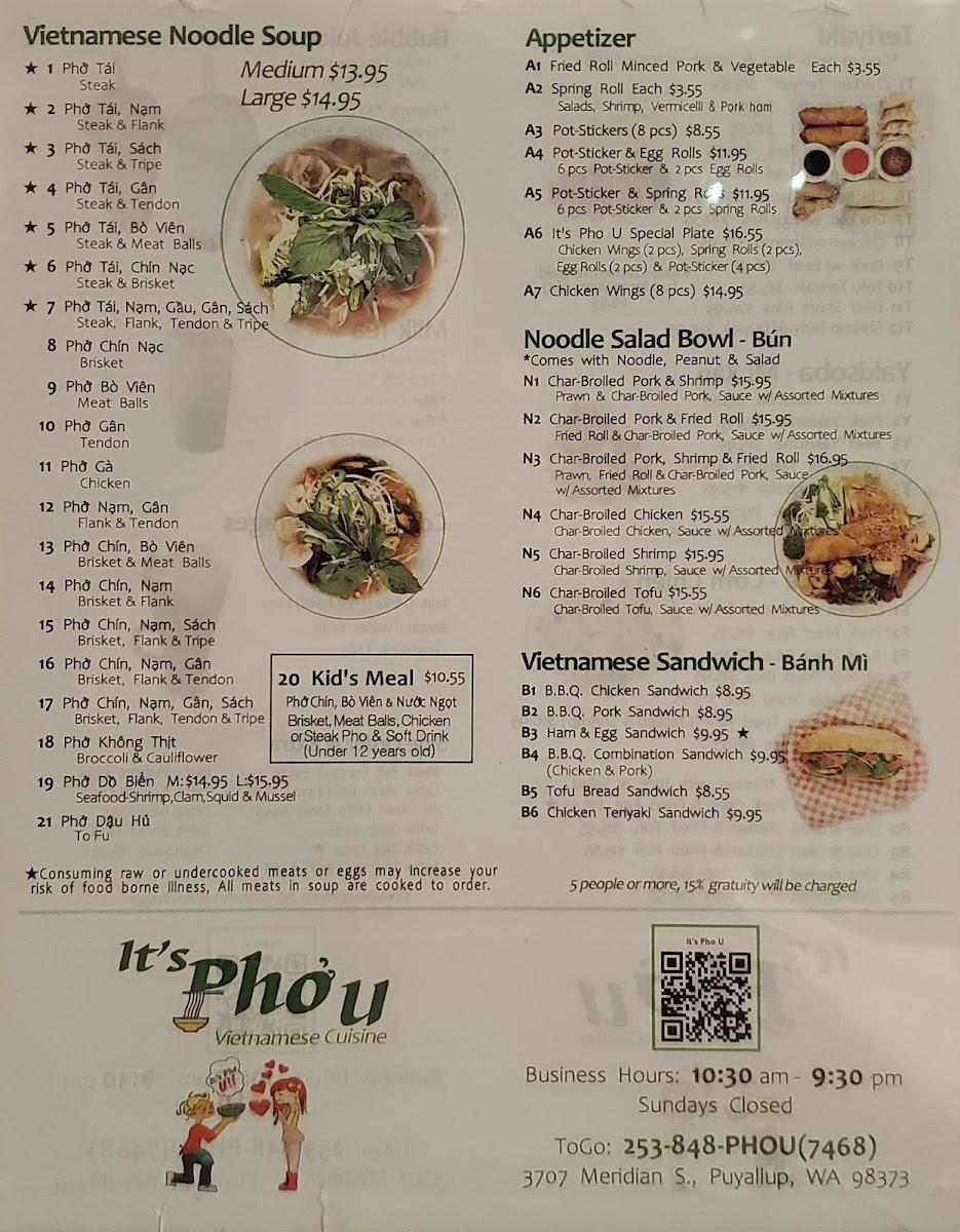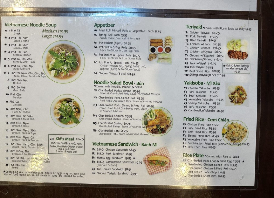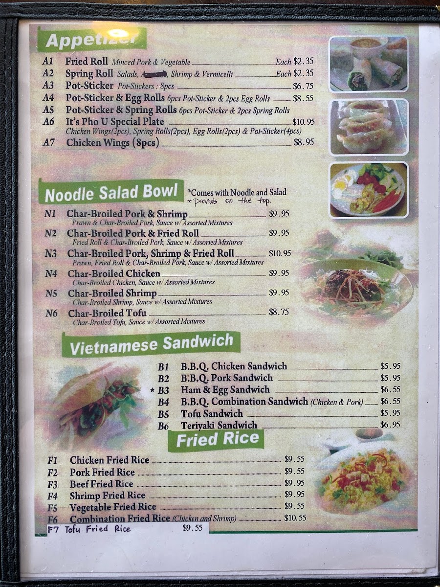 It's Pho U Menu